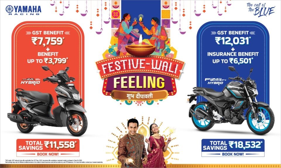 महाराष्‍ट्र दिवाळी सण उत्‍साहात व जल्‍लोषात साजरा करण्‍यासाठी सज्‍ज असताना इंडिया यामाहा मोटर क्षेत्रामधील ग्राहकांसाठी स्‍पेशल ऑफर्स घेऊन आली आहे. या शुभप्रसंगी यामाहा त्‍यांच्‍या लोकप्रिय मोटरसायकल्‍स व स्‍कूटर्सवर जीएसटी फायदे, विमा ऑफर्स आणि कॅशबॅकसह विशेष डिल्‍स देत आहे, ज्‍यामुळे नवीन यामाहासह साजरीकरणामध्‍ये अधिक उत्‍साहाची भर करण्‍याची ही परिपूर्ण वेळ आहे.
